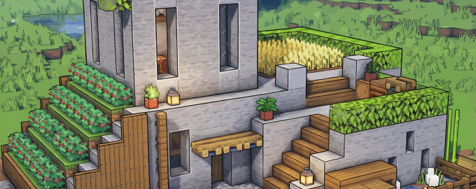 Этот небольшой фермерский дом, построенный из камня в Minecraft, выполнен в современном стиле и сочетает простоту с элегантностью. Внутри предусмотрены