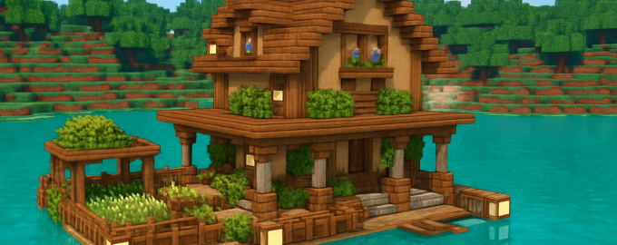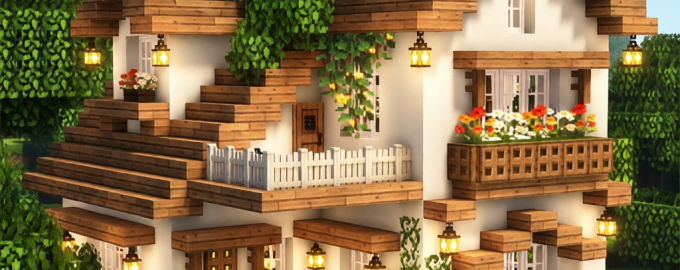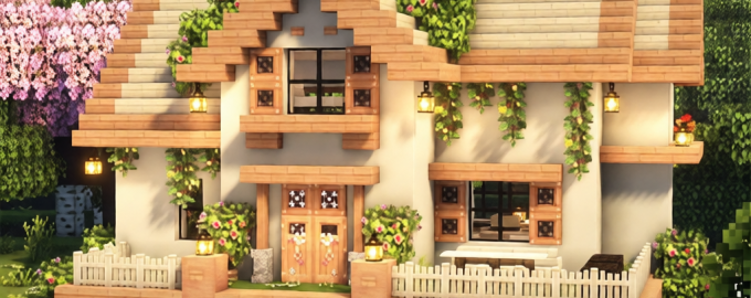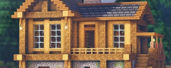 Это компактный и аккуратный домик для выживания в Minecraft. Внешняя отделка украшена интересными деталями, что делает постройку привлекательной и уютной.