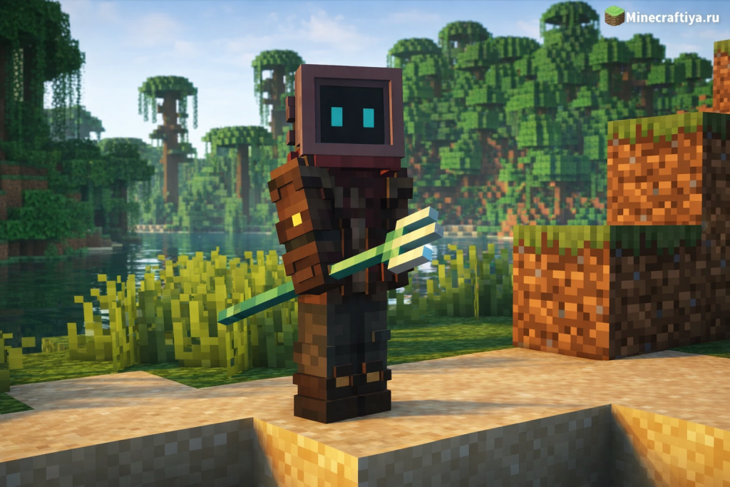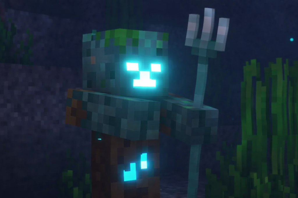 В ванильном Minecraft единственный способ получить Трезубец — это убивать Утопленников. Это подводные версии Зомби, которых можно найти в Океанских и Речных биомах, и они враждебны.
